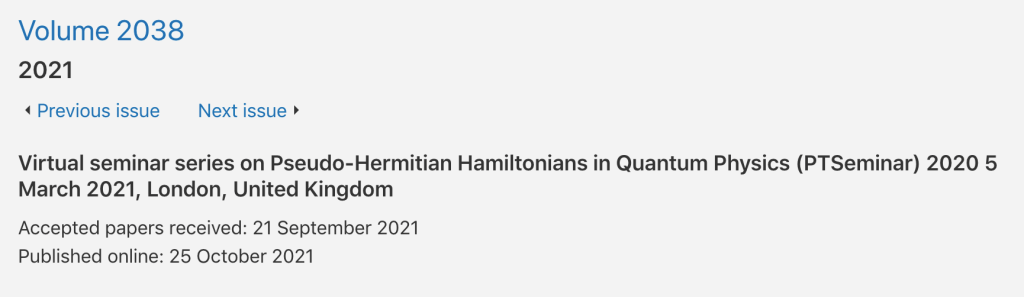 This virtual seminar series is part of the regular real life seminar series on Pseudo-Hermitian Hamiltonians in Quantum Physics that was initiated by Miloslav Znojil in 2003. It is intended to bridge the gap, cause by the COVID-19 pandemic, between the real life XIXth meeting and the upcoming XXth meeting in Santa Fe in 2021 (hopefully in 2020!). For past events see the PHHQP website. The subject matter of this series is the study of physical aspects of non-Hermitian systems from a theoretical and experimental point of view. Of special interest are systems that possess a PT-symmetry (a simultaneous reflection in space and time).